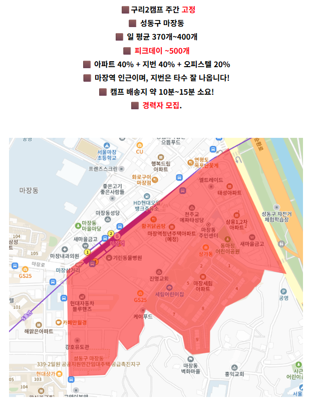 [주간] 구리2캠프 - 성동구 마장동 / 370개~400개