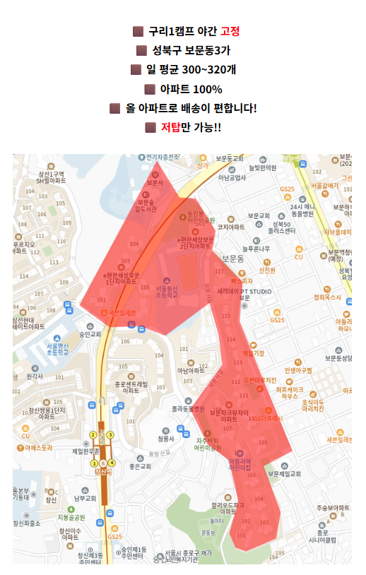 [야간] 구리1캠프 - 성북구 보문동 / 300개~320개