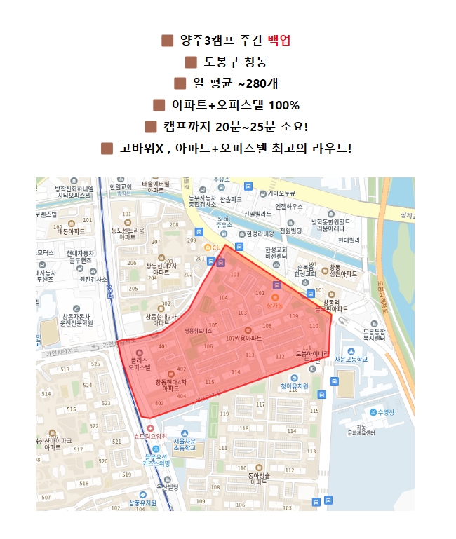 [주간] 양주3캠프 - 도봉구 창동 / 서브라우트 별 상이함